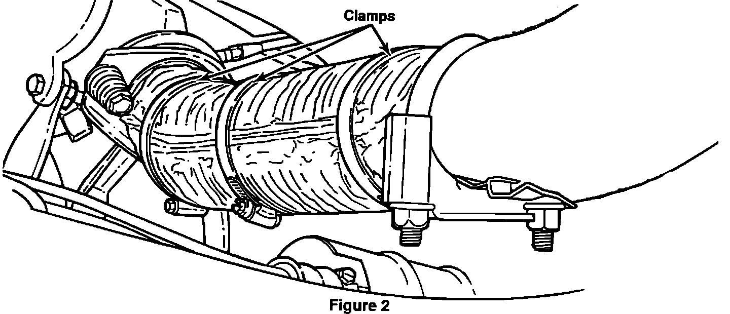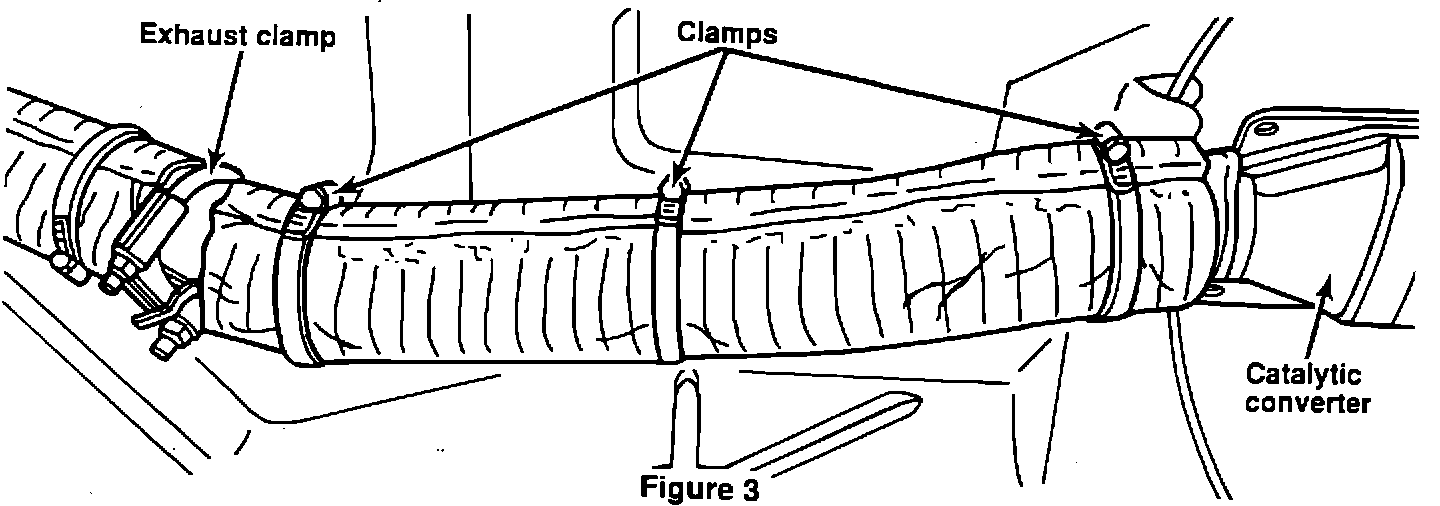 6. Repeat Steps 2 through 5 to install the rear insulation wrap between the exhaust clamp and the catalytic converter (Figure 3).