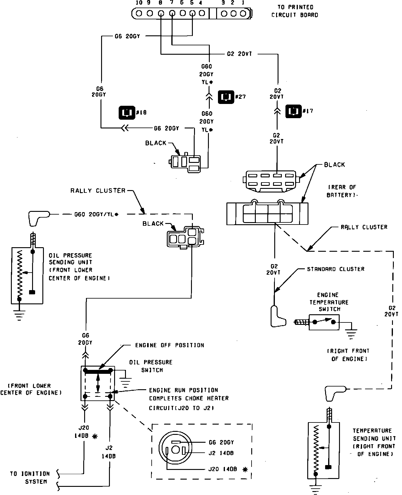Fig. 32 Oil Pressure & Temperature Warning System Wiring Circuit. Models W/2.2L Engine:
