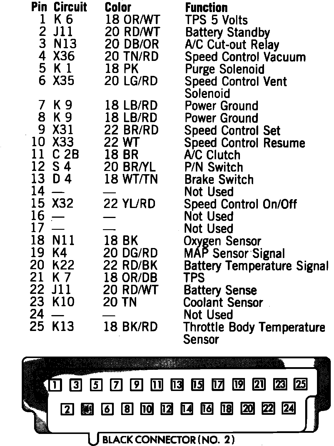 Fig. 10 Logic module black connector terminal identification. 1987 models: