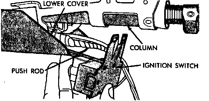 4. Remove two ignition switch mounting screws and permit switch and pushrod to drop below column jacket.
