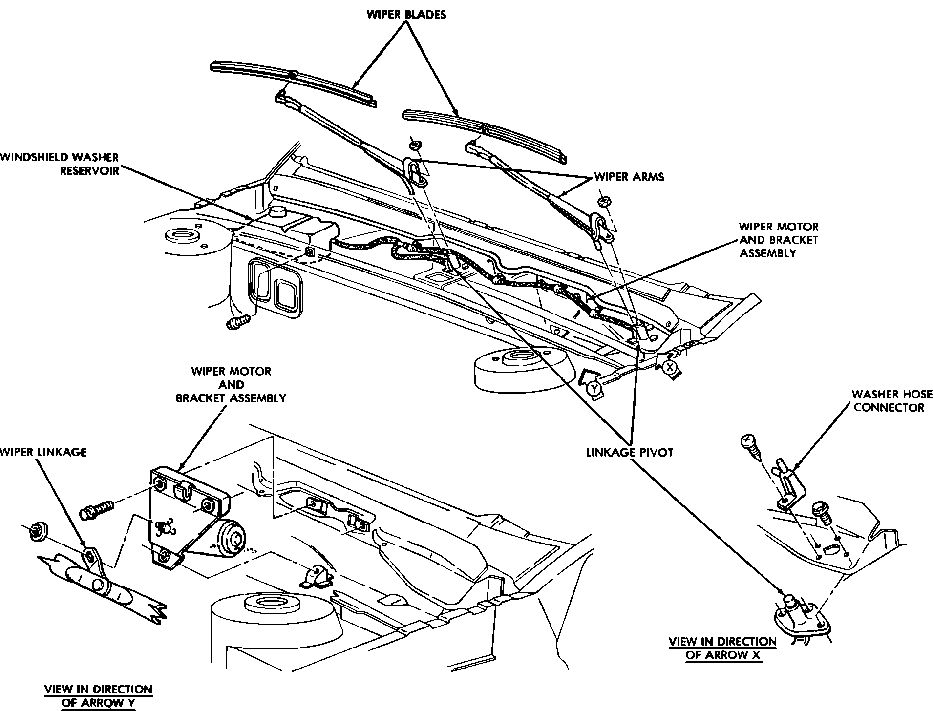 7. Remove wiper motor, bracket and linkage assembly from cowl plenum.