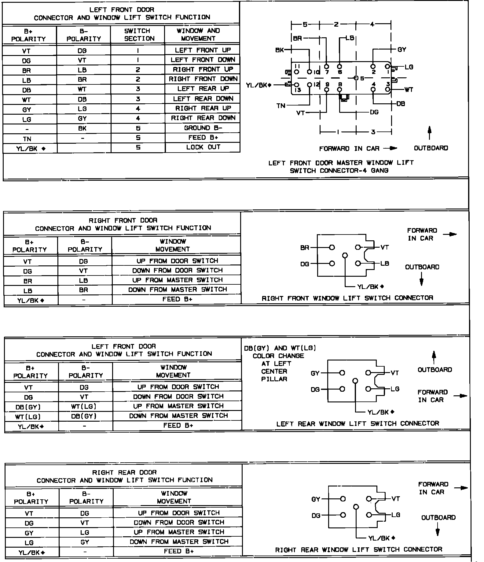 Power Door Lock & Window Switch Connectors: