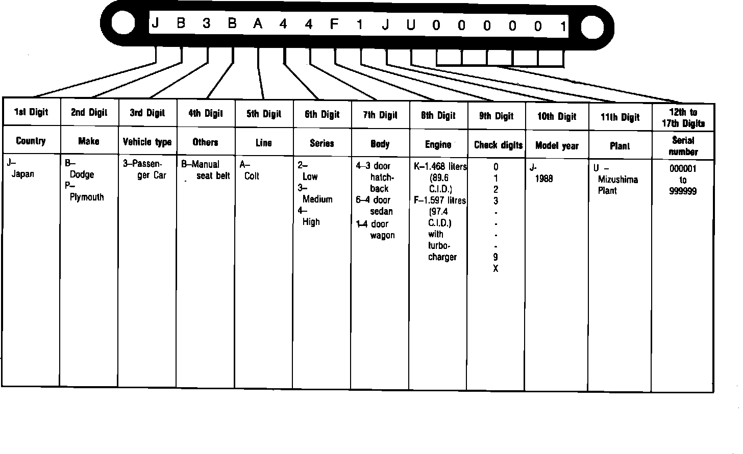 VEHICLE IDENTIFICATION NUMBERColt