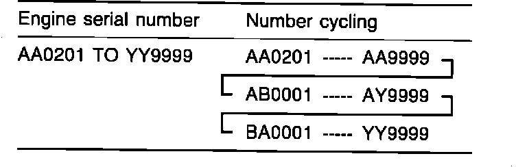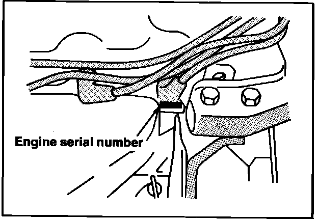 The engine model number is stamped at the right front side on the top edge of the cylinder block as shown in the following: