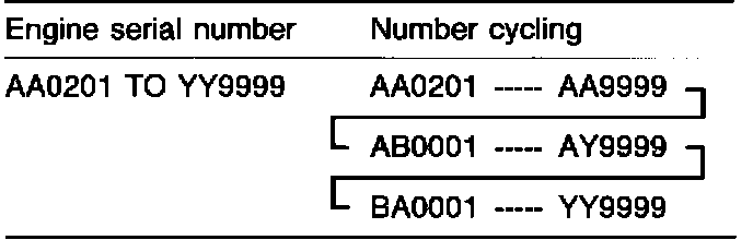The engine serial number is stamped near the engine model number, and the serial number cycles, as shown below.