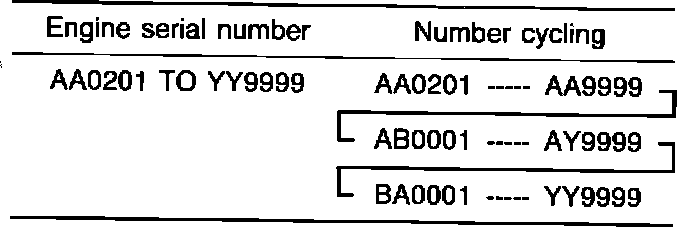 The engine serial number is stamped near the engine model number, and the serial number cycles, as shown below.