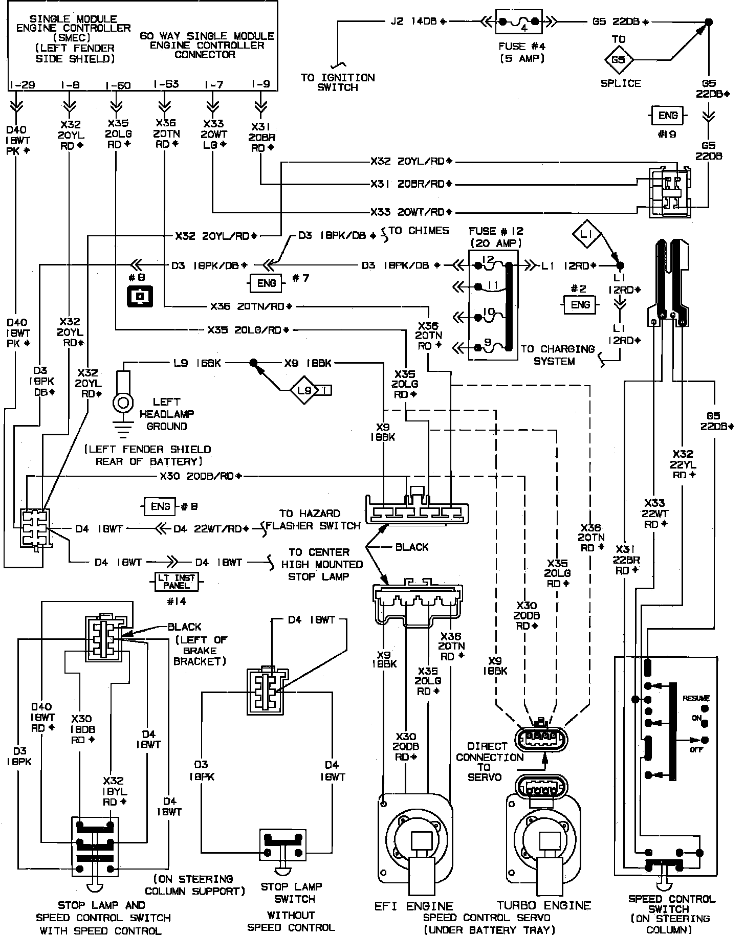 Speed Control & Stop Lamp Switch Wiring Circuit: