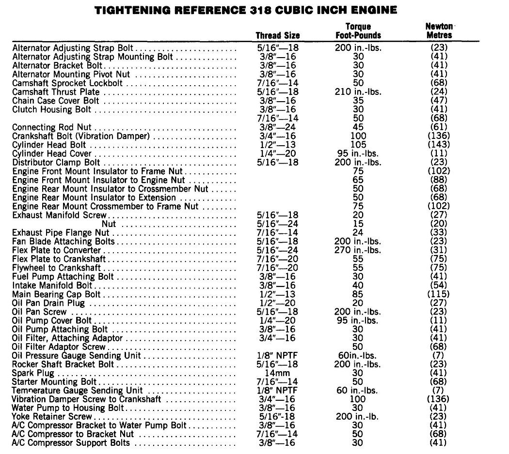 Grand Fury/Salon V8-318 5.2L VIN P 2-bbl