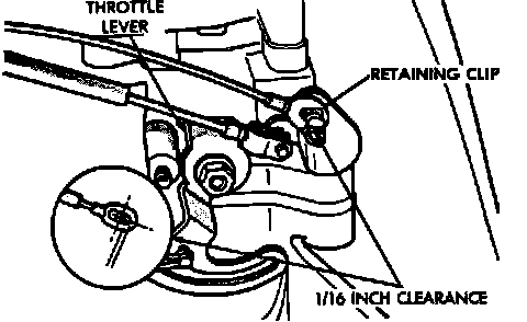 1. Clearance between throttle stud and cable clevis should be 1/16 inch.