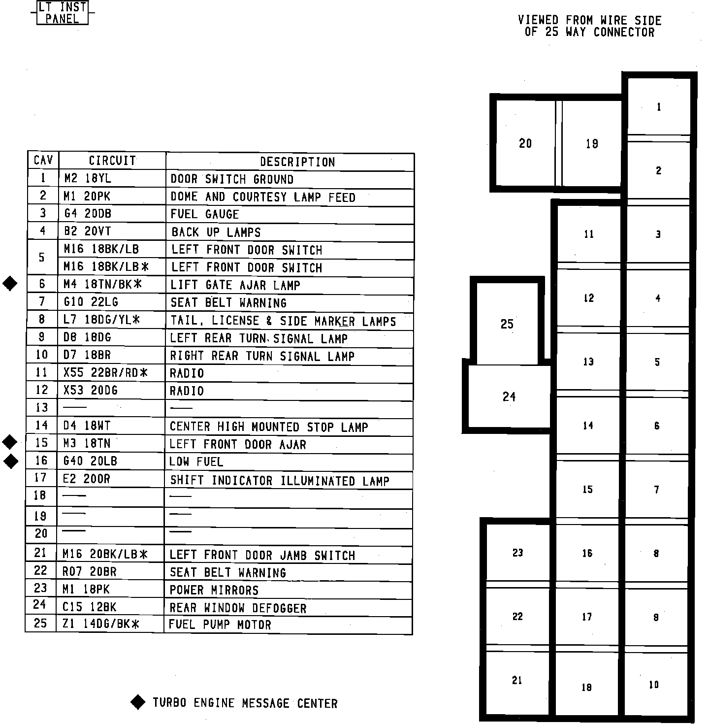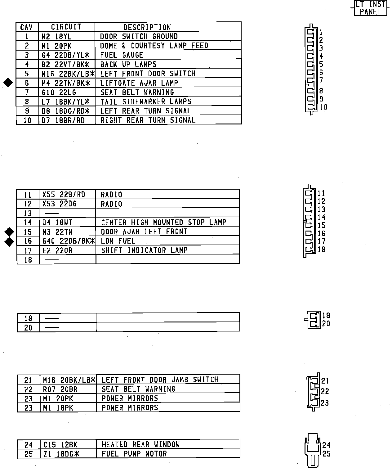 Body To Instrumnet Panel Connector. Left Side: