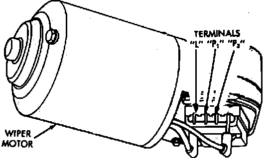 b. On models with concealed wipers, connect jumper wire between motor terminal P2 and ground. If motor runs, check continuity of wiring between motor and switch, switch continuity and ensure switch is grounded.