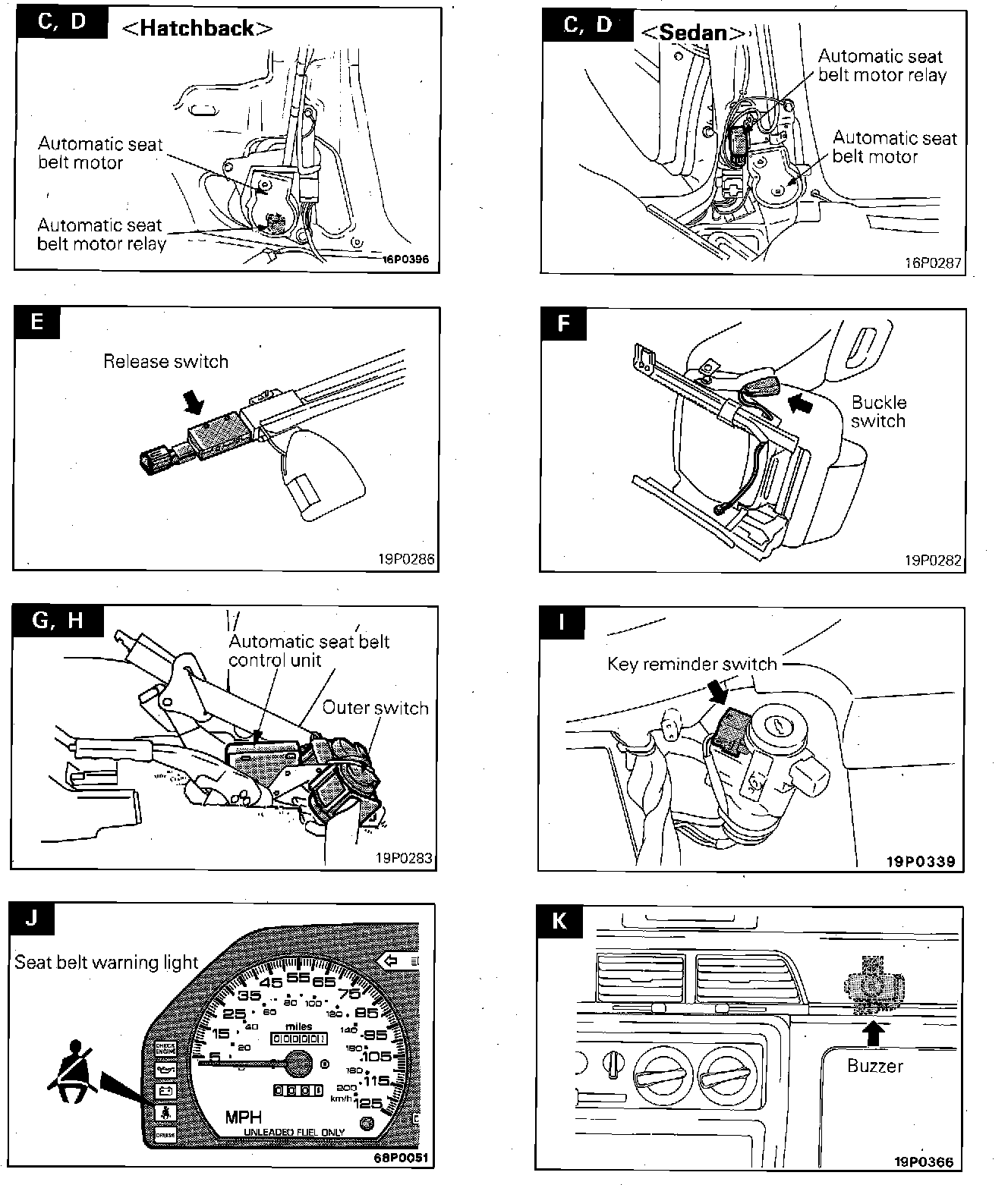 Component/Relay/Switch Locations (Automatic Seat Belt):