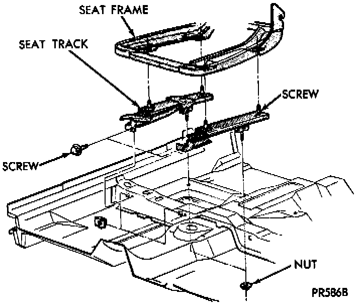 1. Remove seat track mounting nuts from under the vehicle.