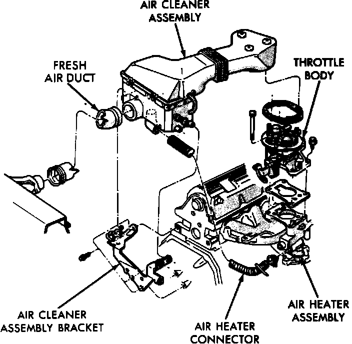 2. With engine cold and running, and ambient temperature in the engine compartment below 115°F, the heat control door in the heated air assembly should be in the up (heat on) position.