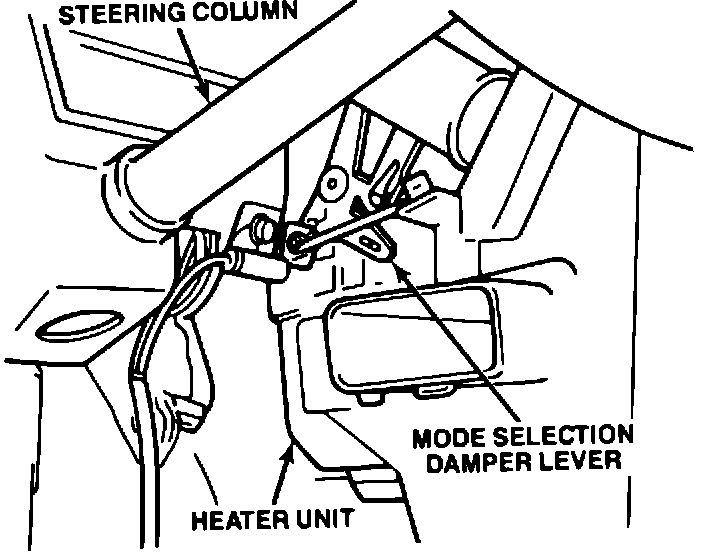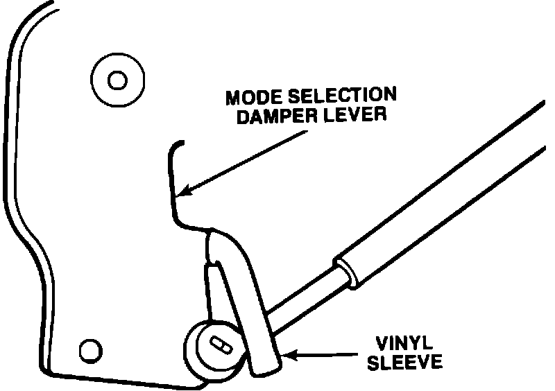 To prevent binding or bending of the mode selection control cable a vinyl sleeve must be added to the mode selection damper lever. This lever is located on the left side of the heater unit directly above the distribution floor duct (Figure 1).