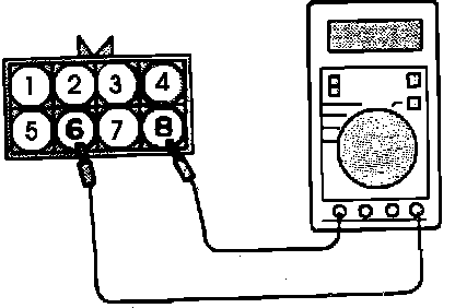 2. Measure the resistance using an ohmmeter connected to terminals (# 4 and # 6 Non-Turbo models) or (# 6 and # 8 Turbo models).