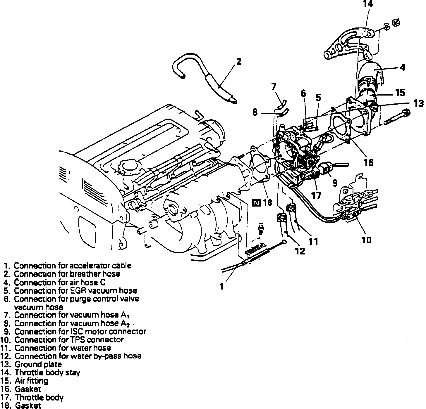 THROTTLE BODY REMOVAL1. Lower the level of the engines coolant to below the intake manifold, by draining a partial amount into a clean container.