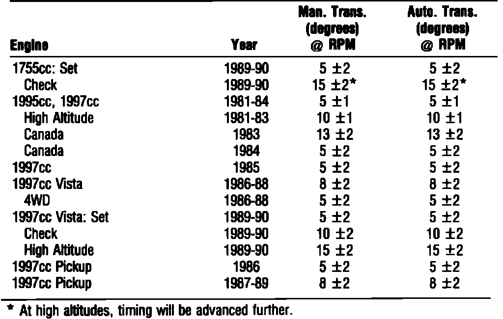 TIMING SPECS 1800cc & 2000cc: