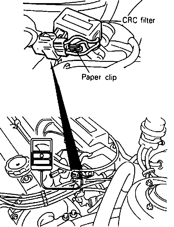 1. Connect a tachometer. Insert a paper clip into the CRC filter connection, then connect the tachometer to the paper clip.
