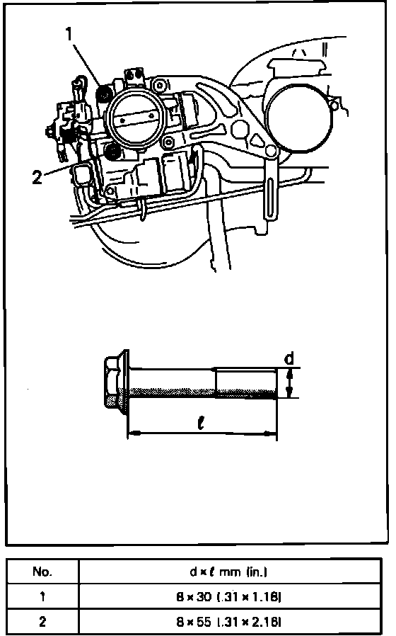 Reverse removal procedure to install. On 2.0L/4-122 engines, when installing throttle body, refer to bolt length chart, Fig. 12.