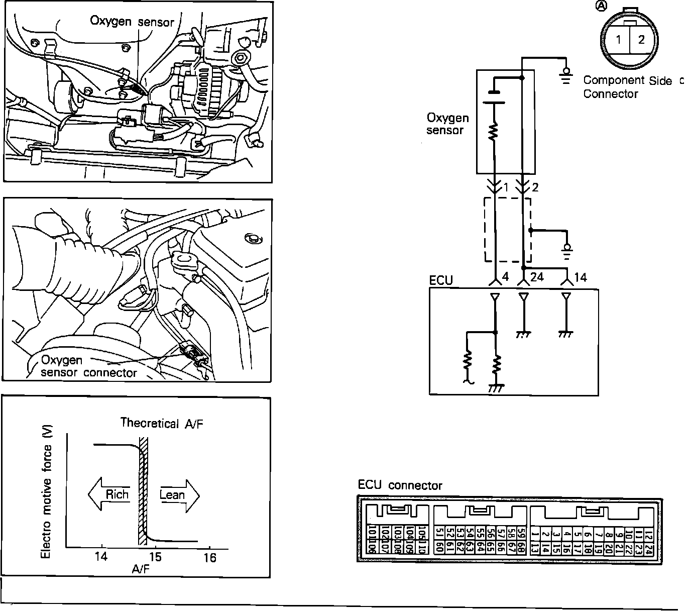 1. Disconnect the oxygen sensor and the ECU connector.