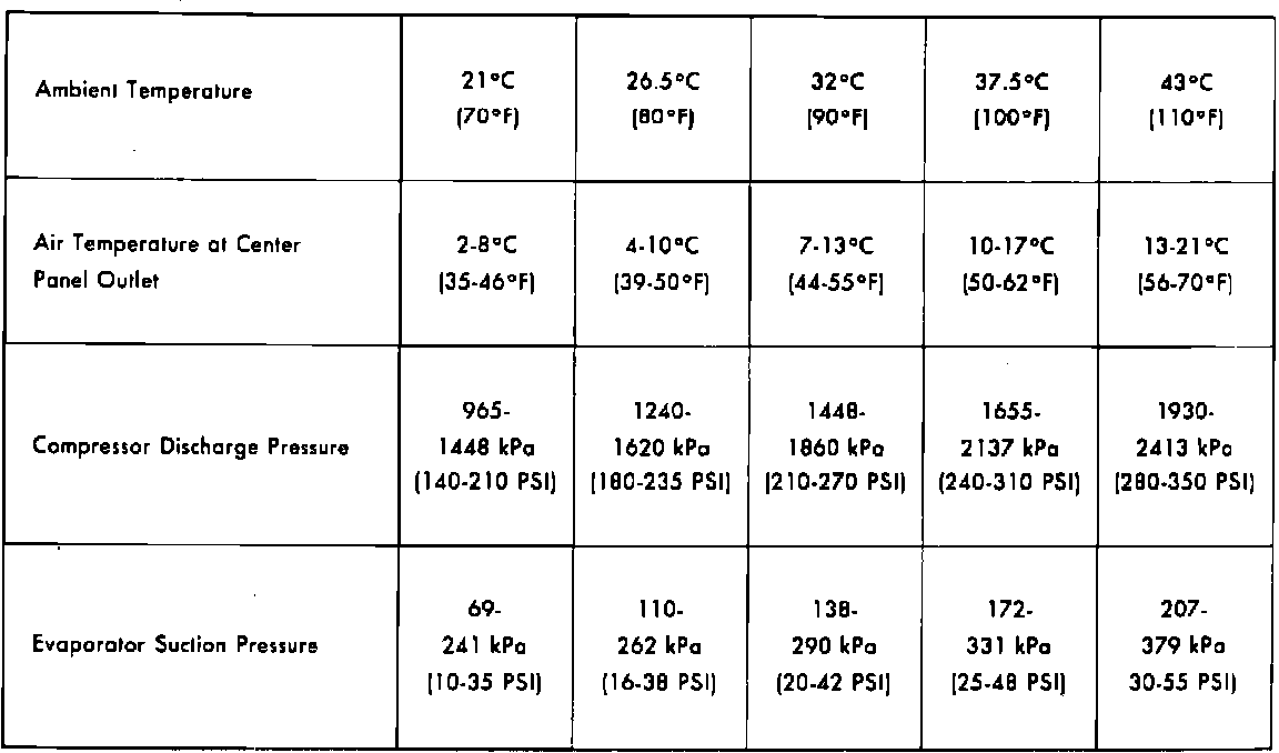 8. If the discharge air temperature fails to meet the specifications in the performance temperature chart, refer to Refrigerant System Diagnosis.