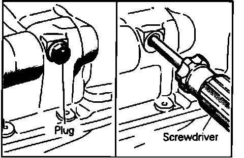 9. When installing driven gear bolt (19), insert a Phillips screwdriver into plug hole on left side of cylinder block, to block the silent shaft.