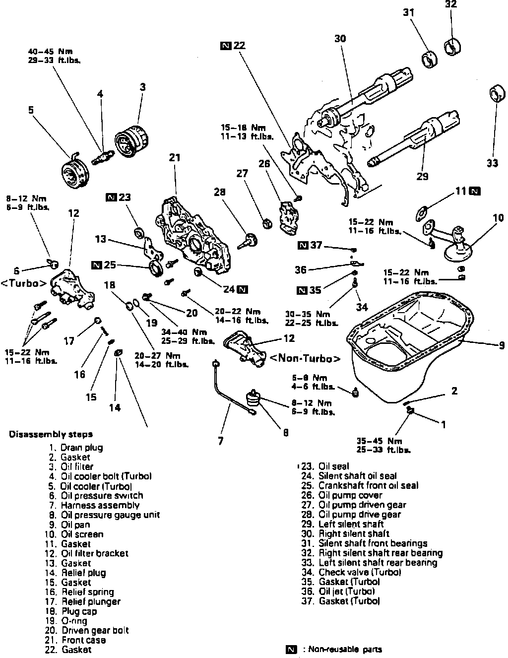 Disassemble front case, oil pump and silent shaft in numbered sequence, noting the following: