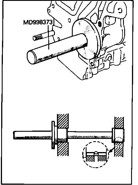 6. Install crankshaft oil seal using oil seal installation tool No. MD998375 or equivalent.