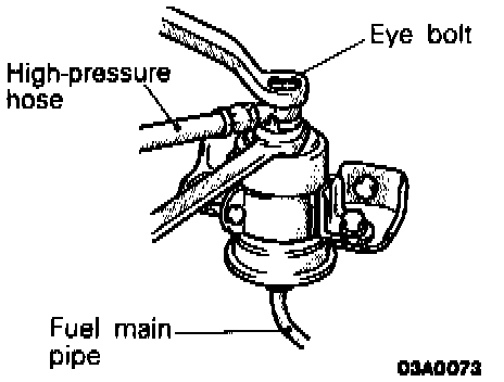 2. Remove the eye bolt while holding the fuel filter nut securely.