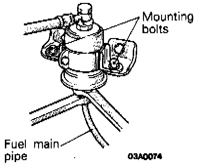 2. Holding the fuel filter nut, tighten the fuel main pipe flare nut to 22 - 29 ft lb (30 - 40 Nm).