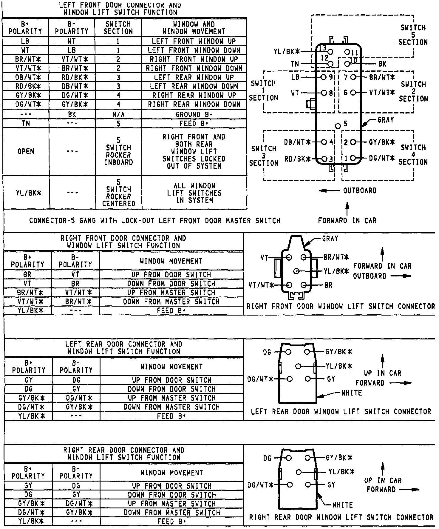Power Window Connector And Switch Function: