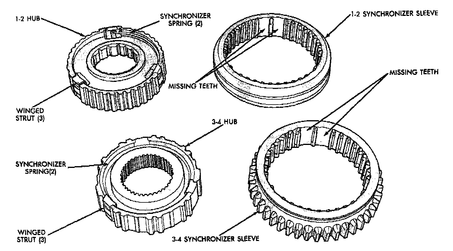 1-2 And 3-4 Synchronizer Sleeves And Hubs: