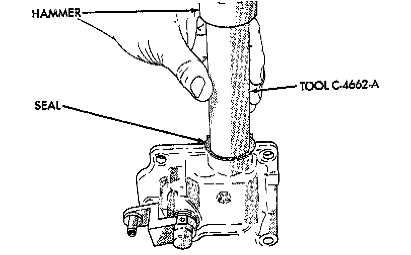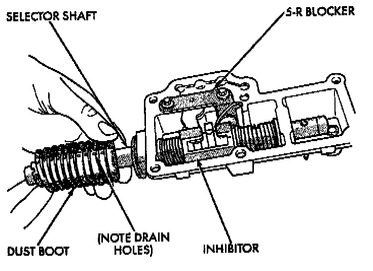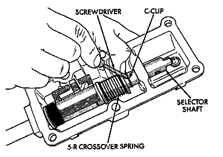 The C-clip grooves in the selector shaft will damage the oil seal. Install oil seal after selector shaft is installed. Always use a new oil seal when selector shaft is removed.
