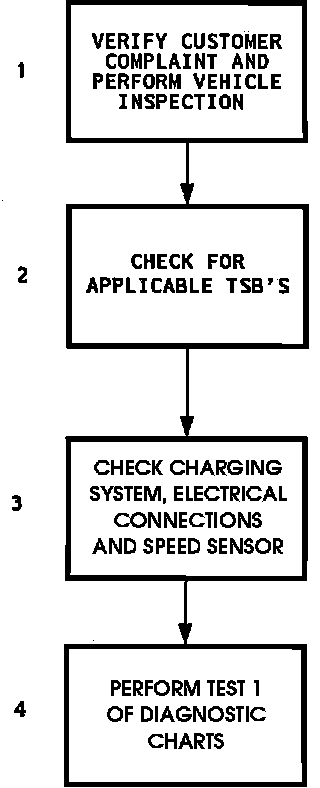 4. Begin diagnostic testing with TEST 1-SYSTEM SELF CHECK under DIAGNOSTIC CHARTS. This will direct you to the specific test(s) that must be performed in response to the specific vehicle fault.