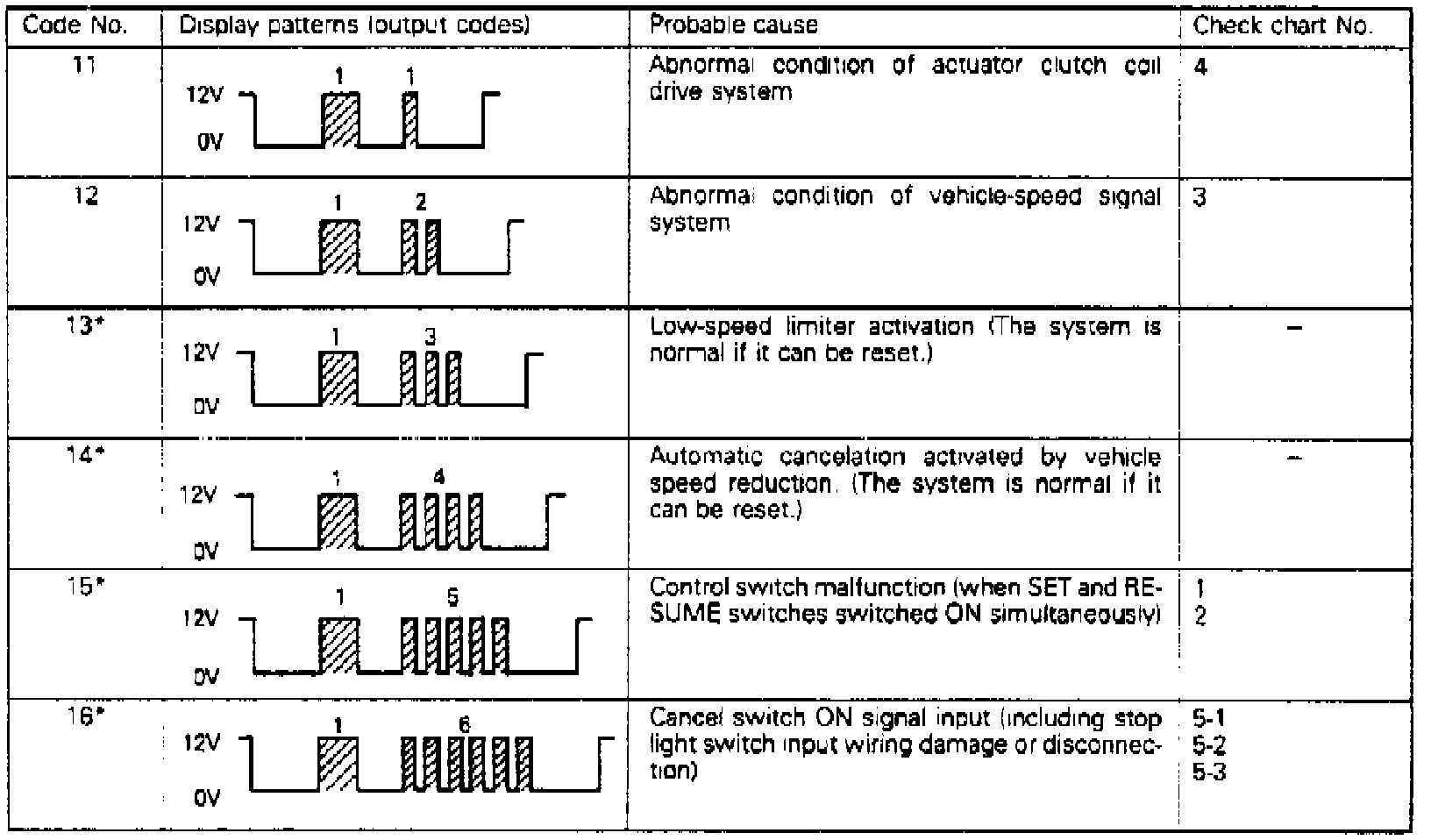 2. There are up to six diagnosis codes, including one for normal condition. Check voltmeter readings with display patterns shown. Then refer to the appropriate diagnostic chart indicated.