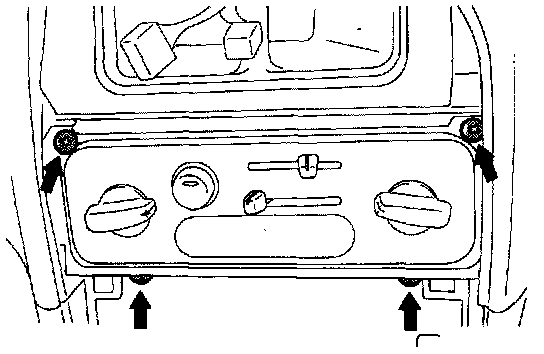 3. Push the heater control assembly into the instrument panel, remove the clock mounting screws, and remove the clock.