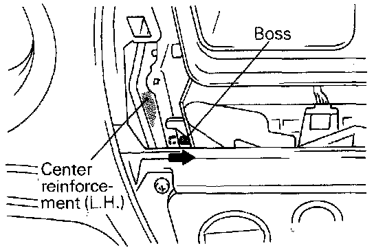 2. Remove the heater control assembly boss from center reinforcement (L.H.).
