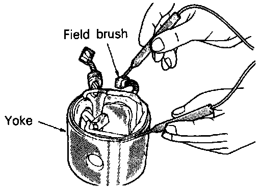 Check the continuity between field coil brush and yoke. If there is no continuity, the field coil is free from grounding.