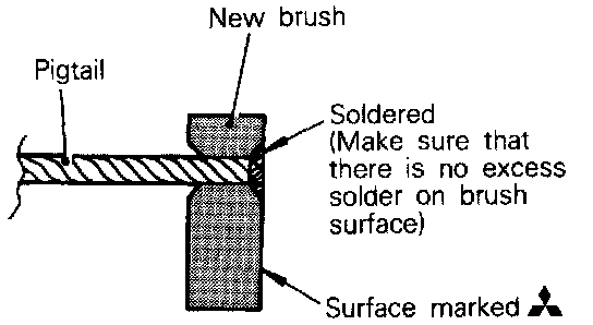 4. Insert pigtail into hole provided in new brush and solder it. Make sure that pigtail and excess solder do not come out onto brush surface.