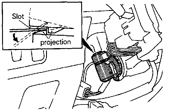 Insert a standard screwdriver or similar tool in the slot and pry out the projection as indicated by an arrow to remove the connector.