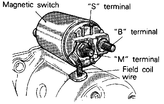 Disconnect field coil wire from "M" terminal of magnetic switch.