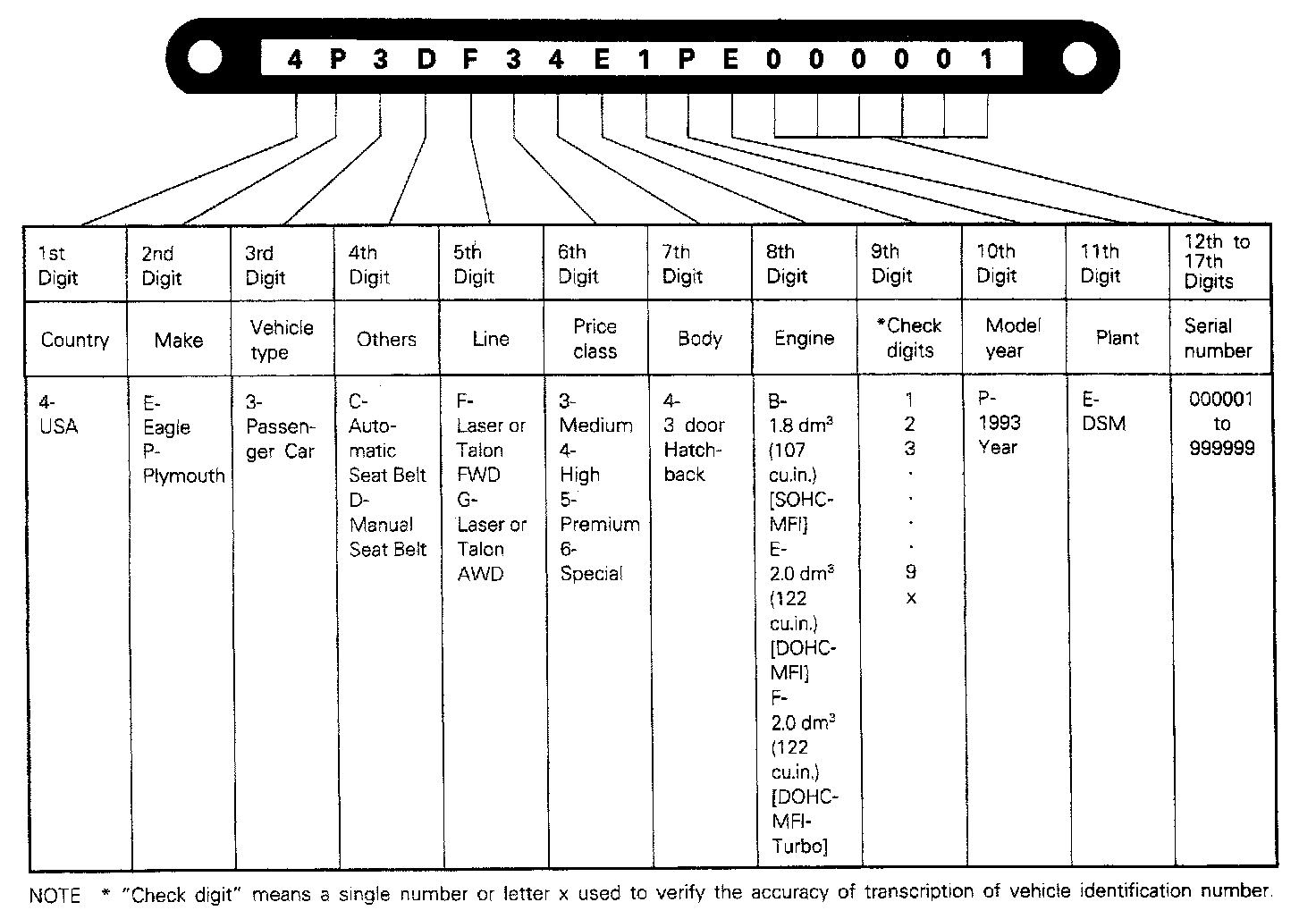 All vehicle identification numbers contain 17 digits. The vehicle number is a code which tells country, make, vehicle type ets. The V.I.N. is located on a plate attached to the left top side of the instrument panel.