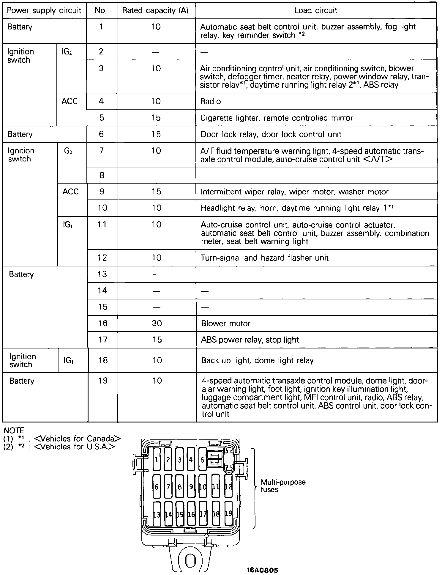 Multi-Purpose Fuse (Inside Junction Block):
