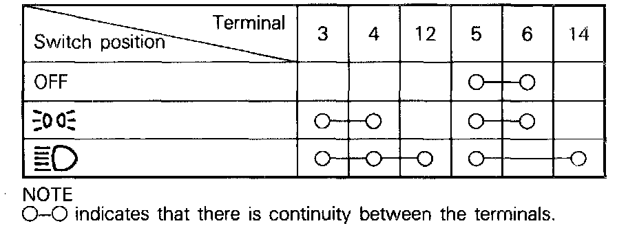 Lighting Switch Continuity Chart: