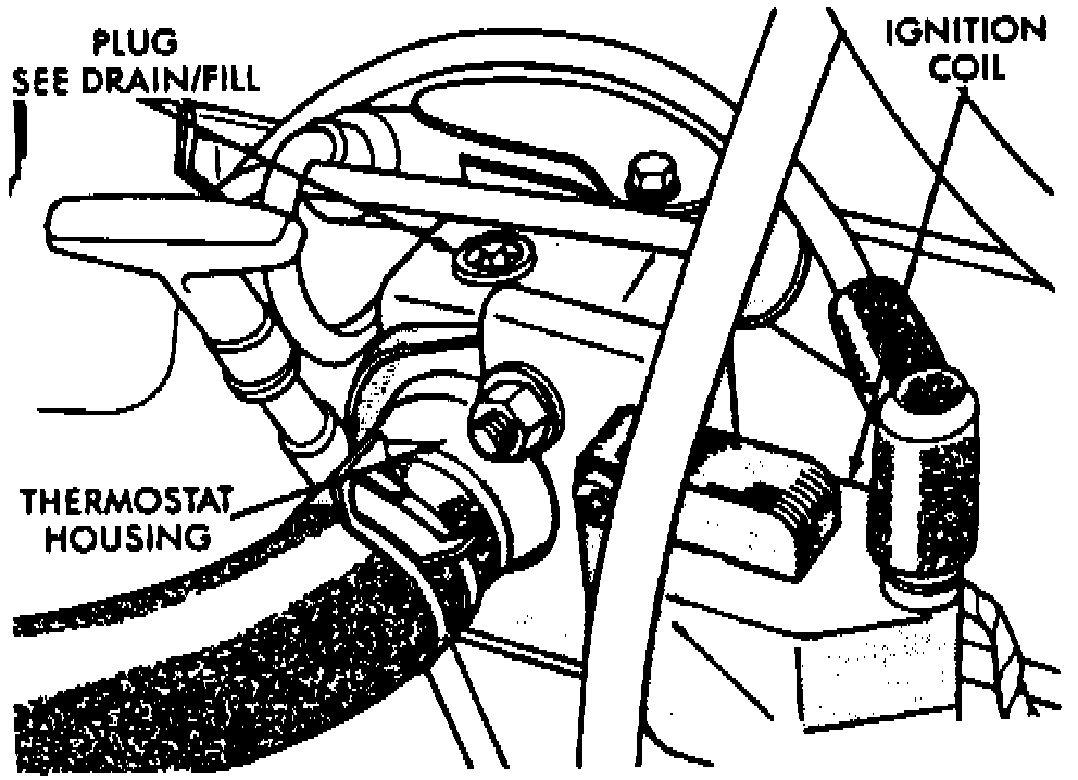 Fill the system with the recommended 50% mixture of antifreeze and water until mixture reaches the vent holes, then tighten the vent plug to specifications. Continue to fill cooling system until full.