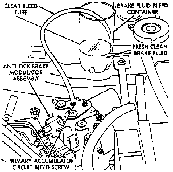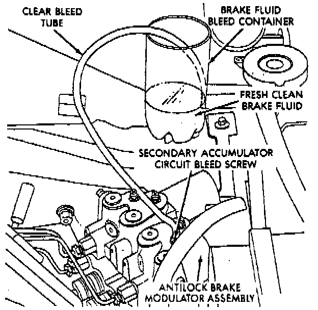 e. Allow fluid to flow continuously until it appears to be free of air bubbles. If brake pedal bottoms out before bubbles cease, repeat accumulator circuit bleed procedure.