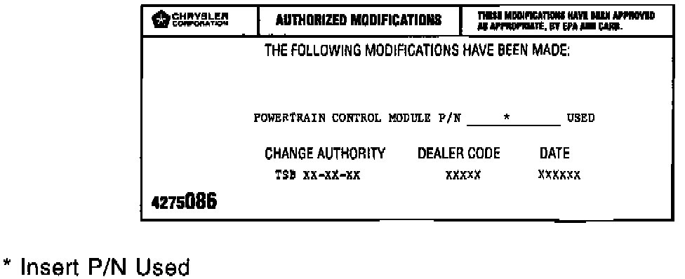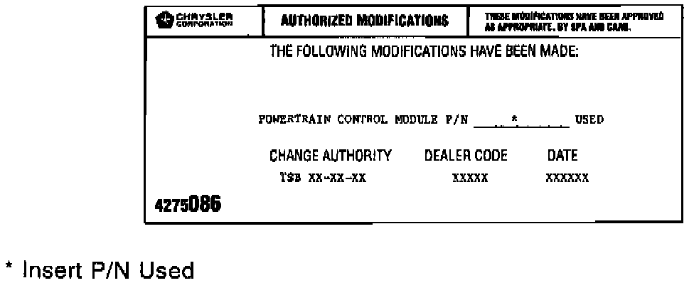 9. Type the necessary information on the "Authorized Software Update Label" and attach it to the PCM and cover the label with a clear plastic sticker.