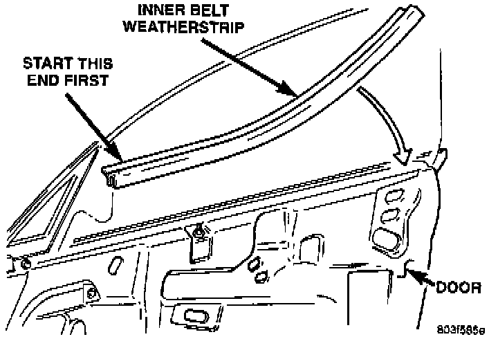 1. Place inner belt weatherstrip in position on door.