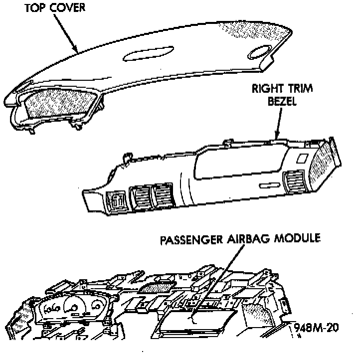 After a PASSENGER airbag has been deployed, the passenger airbag module must be replaced because it cannot be reused. Other components are replaced if damaged. These might include the trim bezel, top cover or the entire instrument panel.
